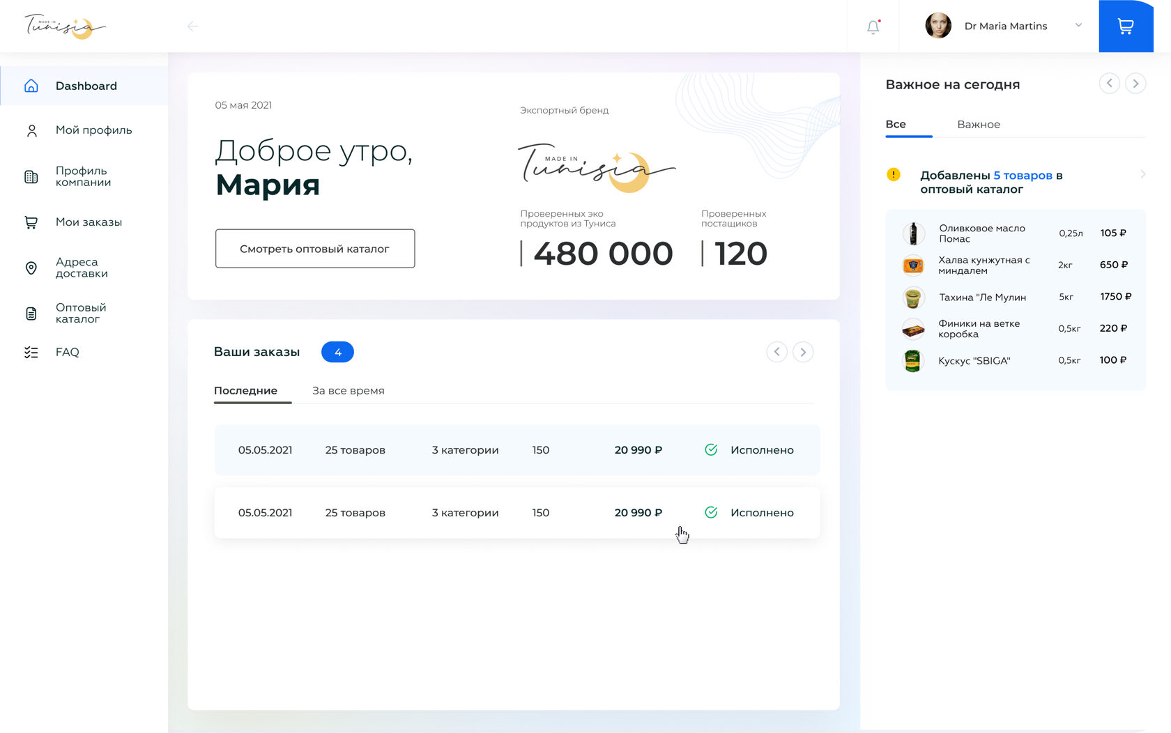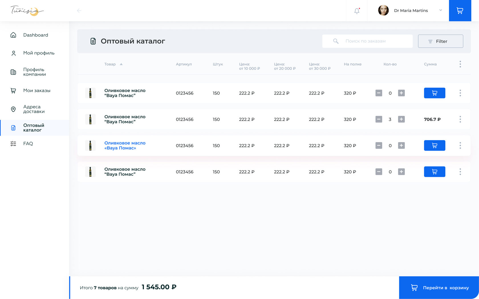 All products available for export are provided in the Catalog. You can manage the product range at any time: add and remove items, adjust the information