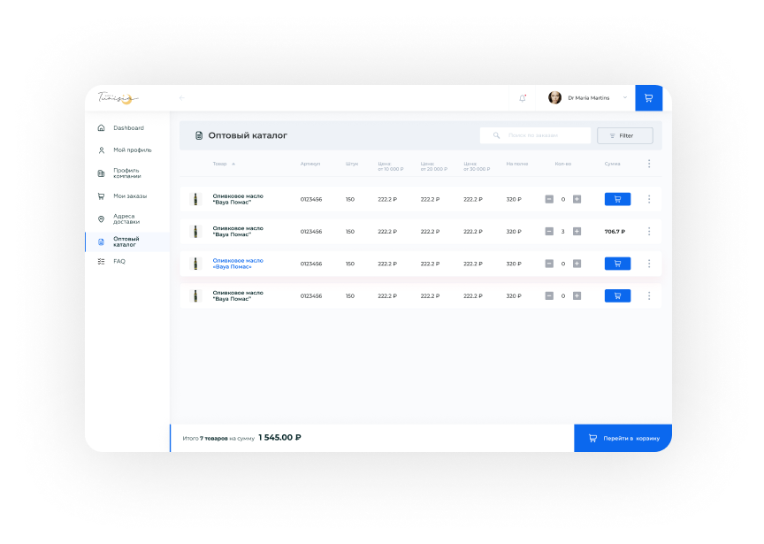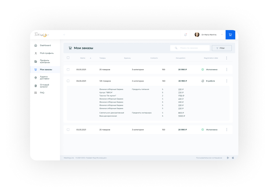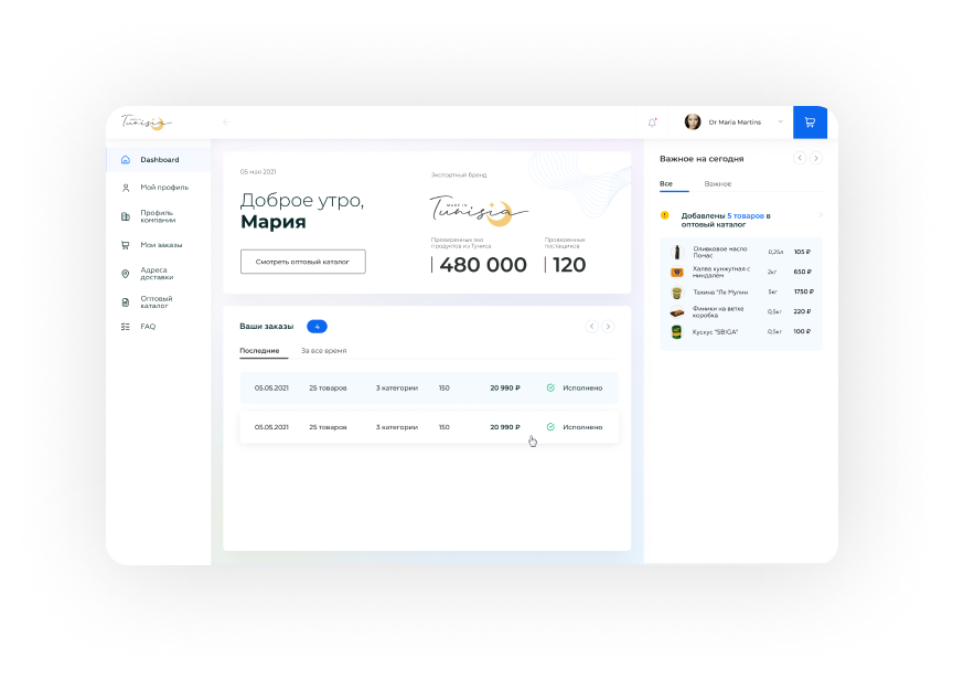 The personal account is easy to use: at any time and in any place, you can find information on the order, place your own products, receive documents in electronic form